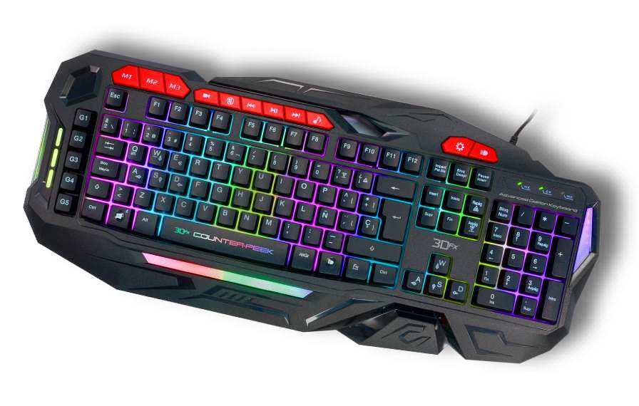 Juega a ser el campeón , juega como los profesionales, combinando la tecnología más avanzada con una amplia gama de características personalizables. Sienta la comodidad de los teclados 3DFX los cuales proporcionan un mayor confort durante largas horas de juego. La ubicación estratégica de todos los botones proporciona un posicionamiento perfecto para los juegos, sin esfuerzo. Incorpora iluminación en la teclas, 7 colores que van intercambiando, presionando una tecla puedes seleccionar el tipo de iluminación